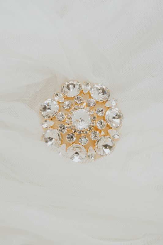 Broche dorado de cristal grande