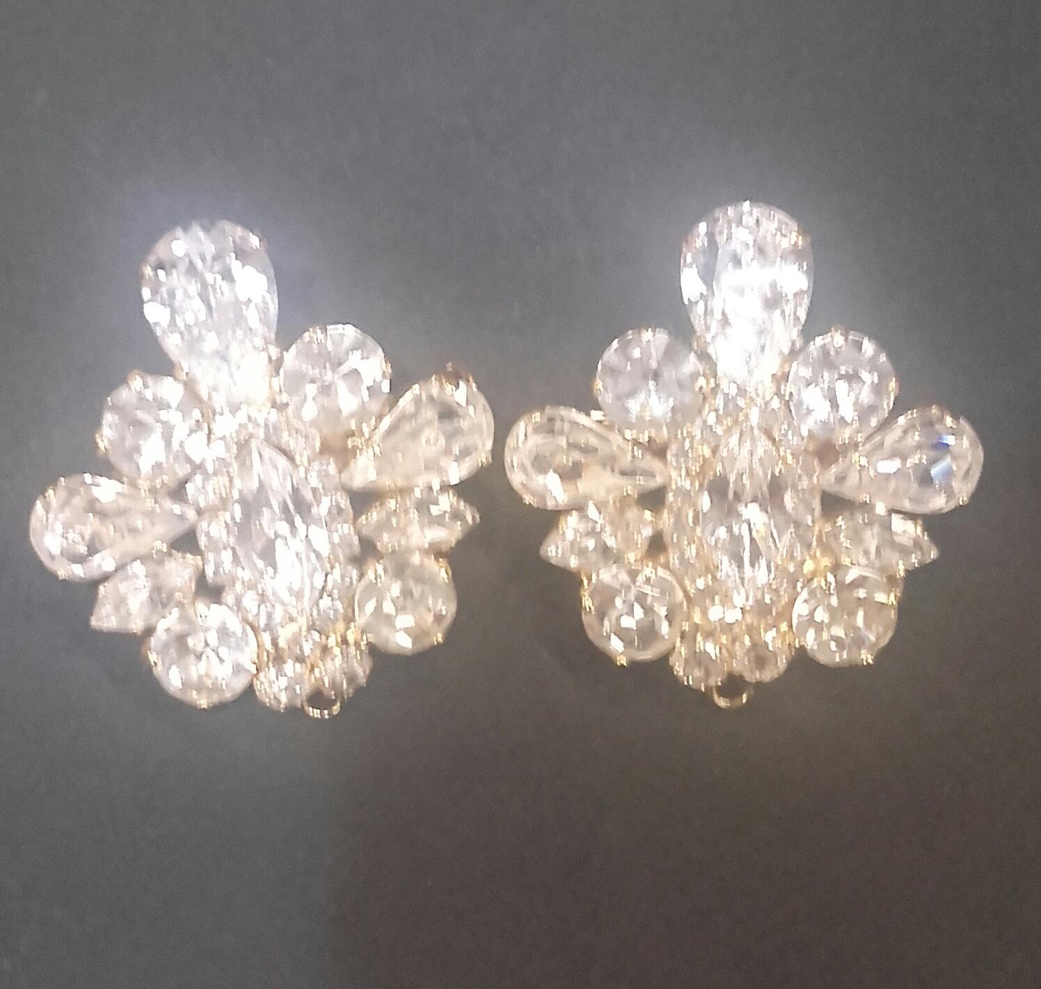 Broches de novia dorados elaborados con piezas ovaladas de cristal blanco.