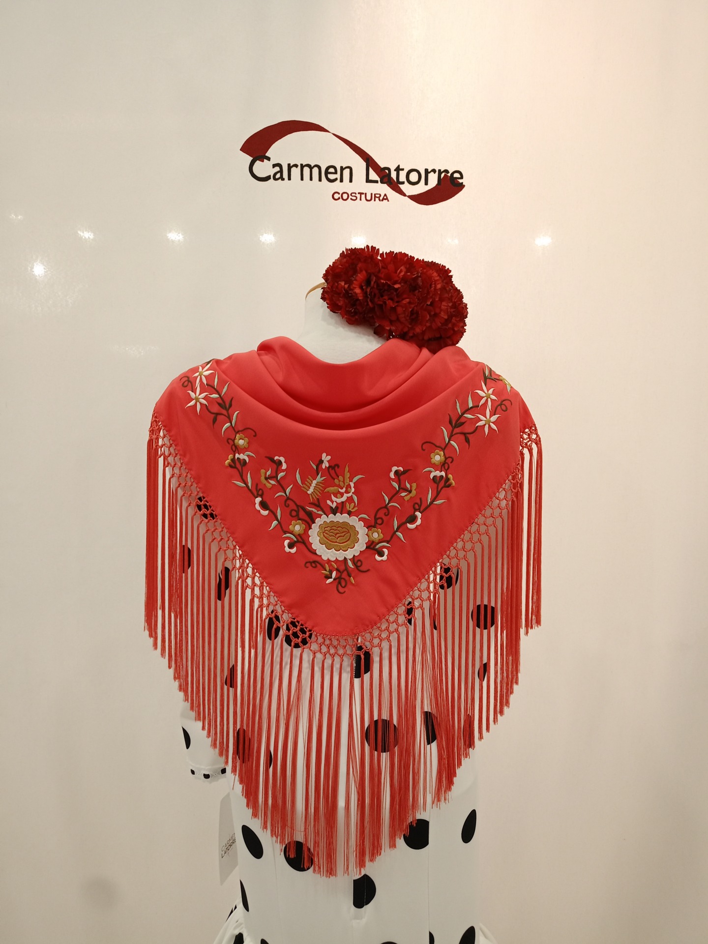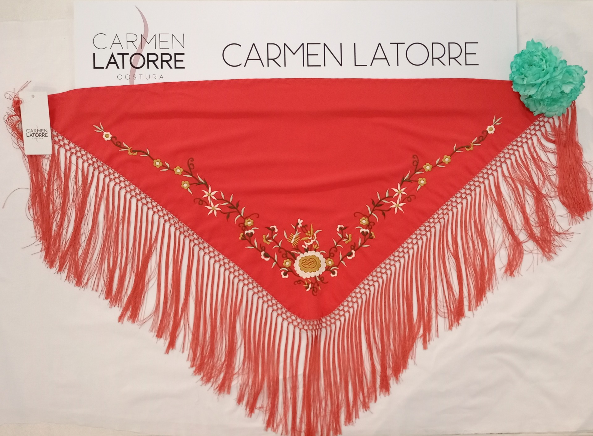 Mantoncillo de señora bordado manual y fleco de seda