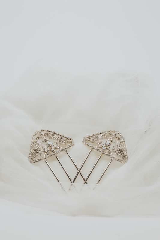 Pareja de peines en forma piramidal de rodio