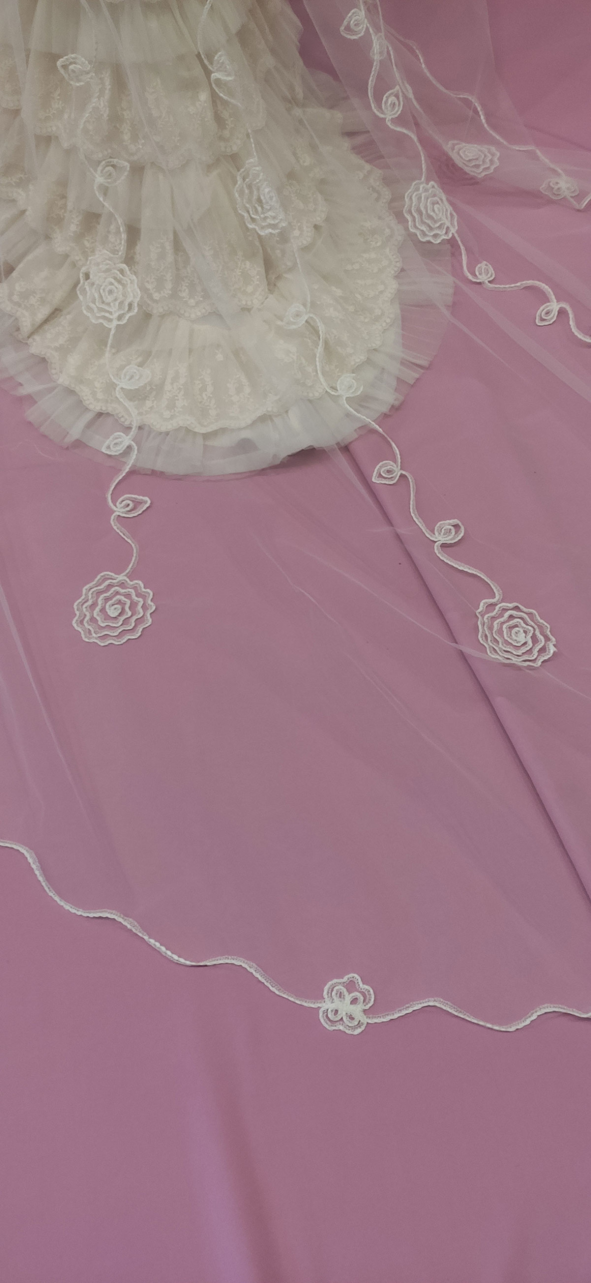 Velo ilusión de Rosas matizadas en manila. Medidas: 2×3