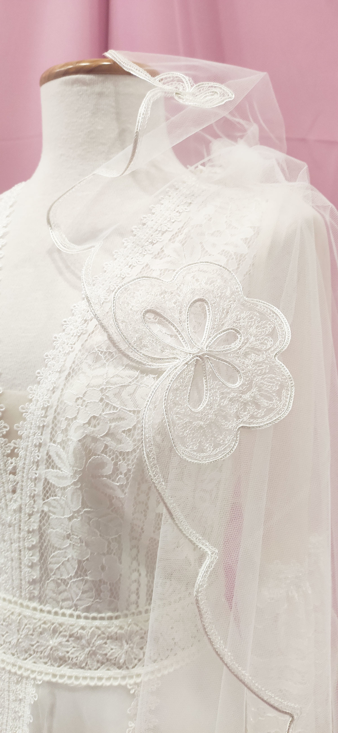 Velo ilusión con rosas bordadas en blanco natural. Medidas: 2,3 x 2,35