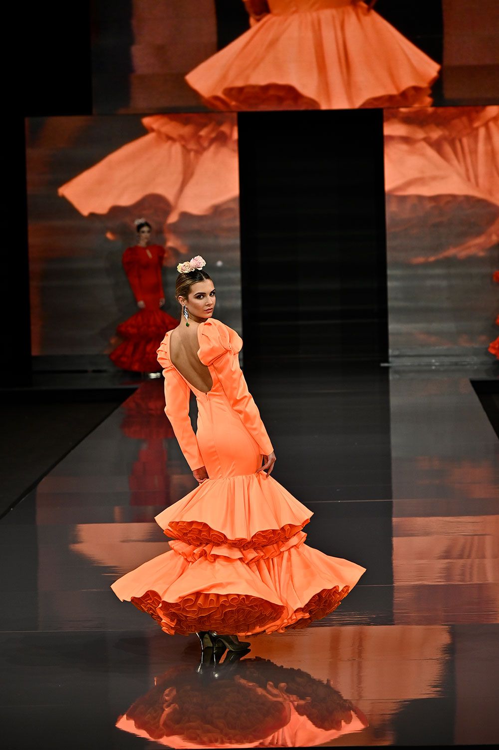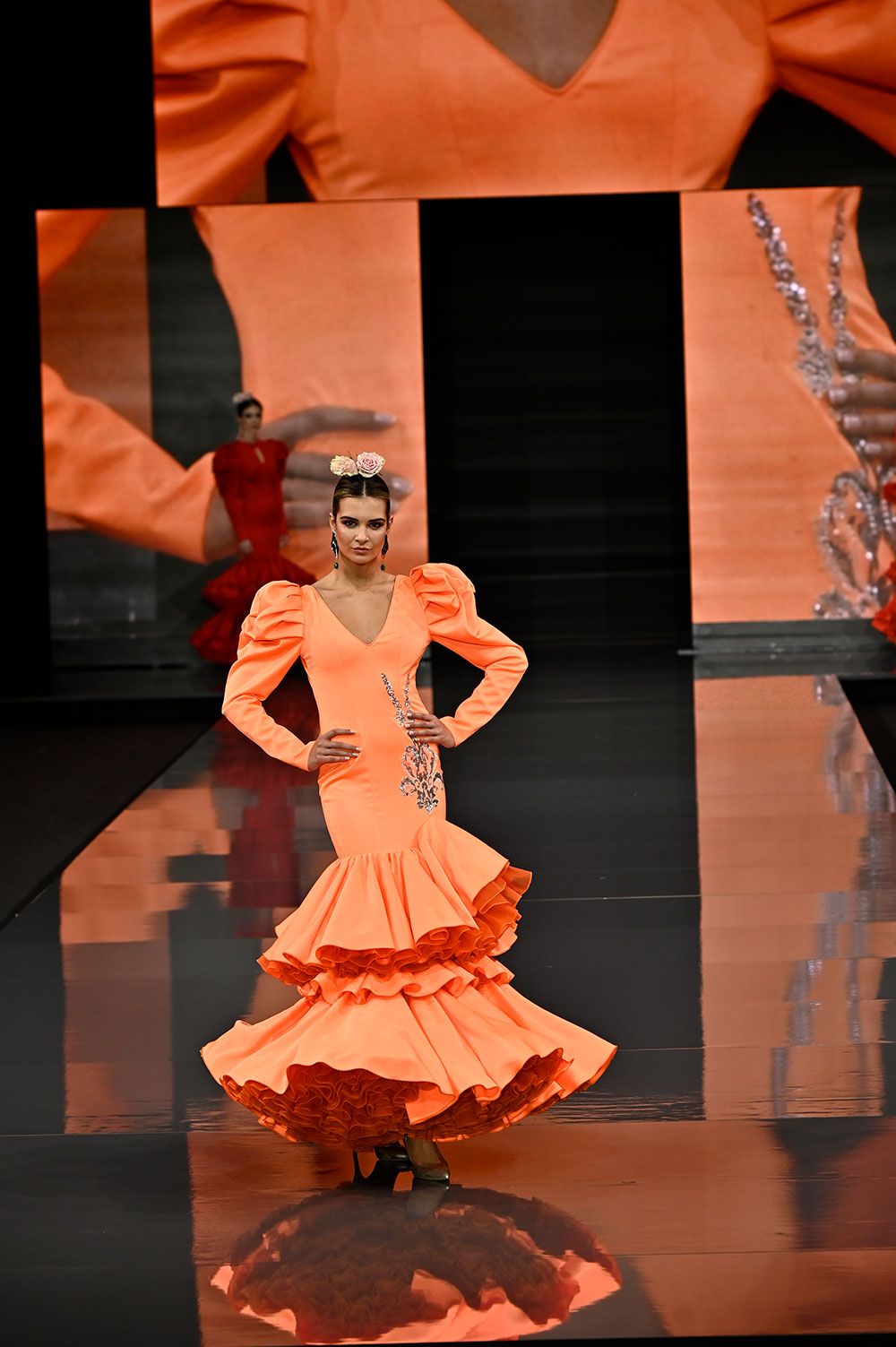 Vestido melocoton aplique brillos